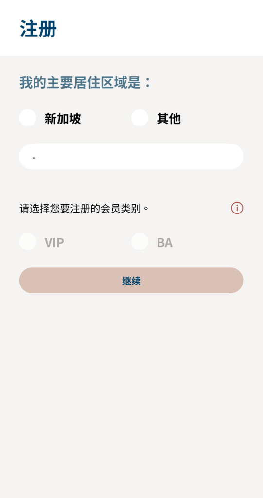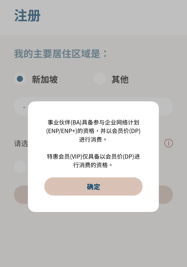 第一,先选择您的主要居住区域(记得是通讯地址而不是国籍)以及会员类别。值得一提的是,只要您打算购买至少3件产品,请直接选择注册为 BA 吧,没有会员费也不需要每个月消费。将来万一如果有朋友喜欢您用/吃的产品,那么有一天她注册并下了单后您就能享有至少马币100/新币25的推荐奖金。