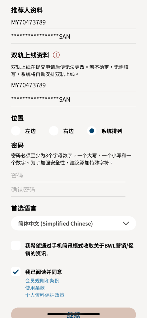 重要提示:推荐人资料和双规上线资料请您加入会员号码 MY70473789,接下来的名字系统会自动更新。