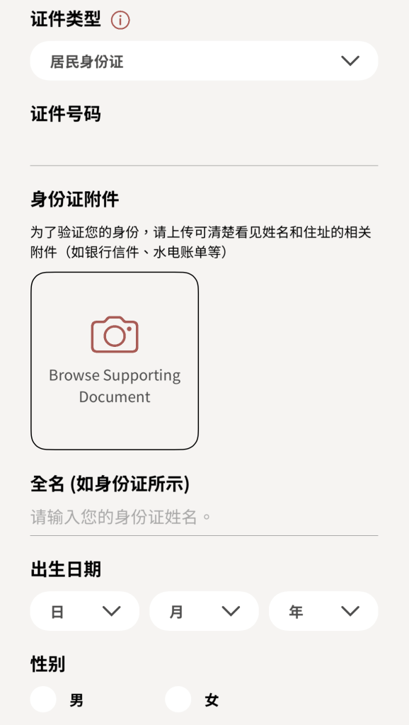 接着请开始填入个人资料。为了更佳地保护每一个会员们的利益,公司需要身份证附件以核查和确认每个新会员的身份: