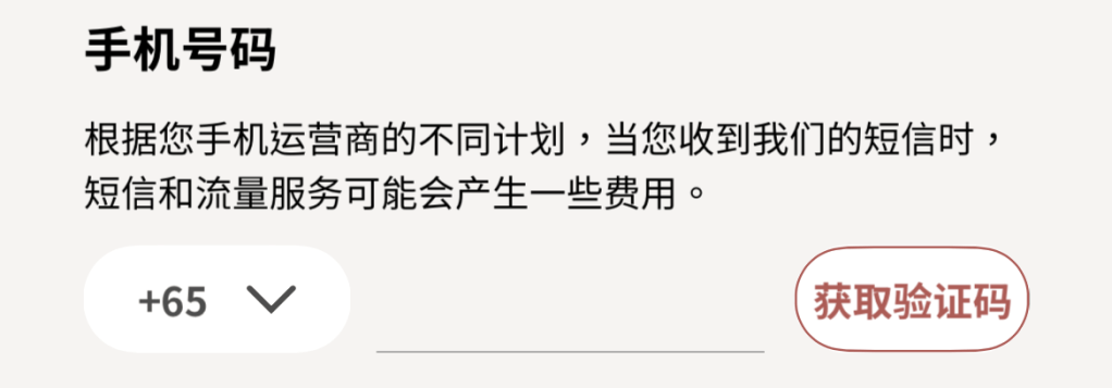 当您看到这手机号码的部分时,请先填入号码然后获取验证码: