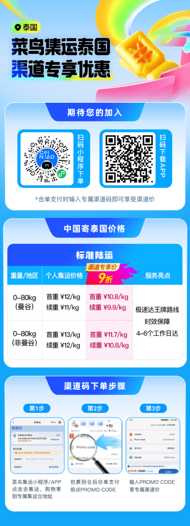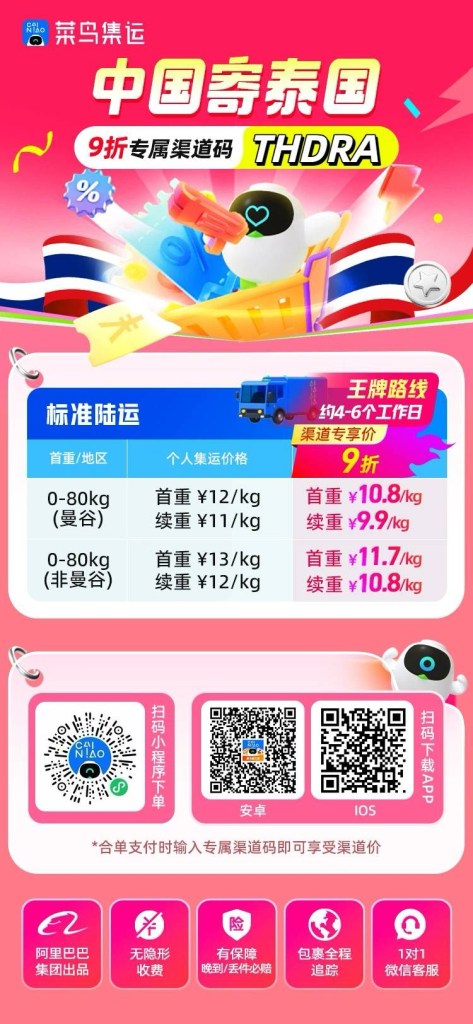 中国直邮/集运泰国 via 菜鸟,包裹物流状态实时查看!使用 PROMO CODE THDRA 享有9折优惠